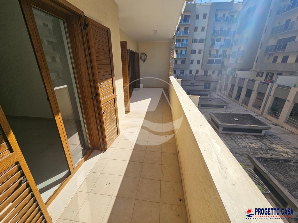 Nella zona Ponente di Molfetta, all’interno di un fabbricato di recente costruzione, proponiamo in vendita elegante appartamento rifinito con doppio affaccio e splendida veranda vista mare.
