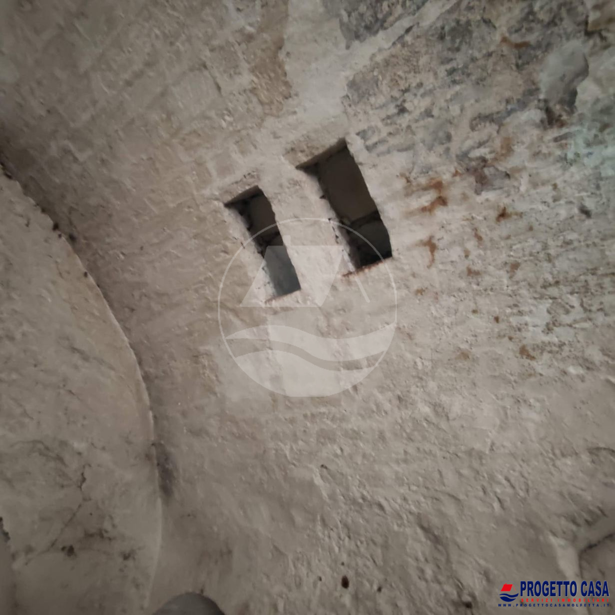 I dettagli architettonici sono i veri protagonisti: le maestose volte a botte e le pareti sono interamente realizzate in pietra locale, richiamando la tradizione pugliese più autentica, così come la caratteristica pavimentazione in pietra che ne percorre l'intera superficie.